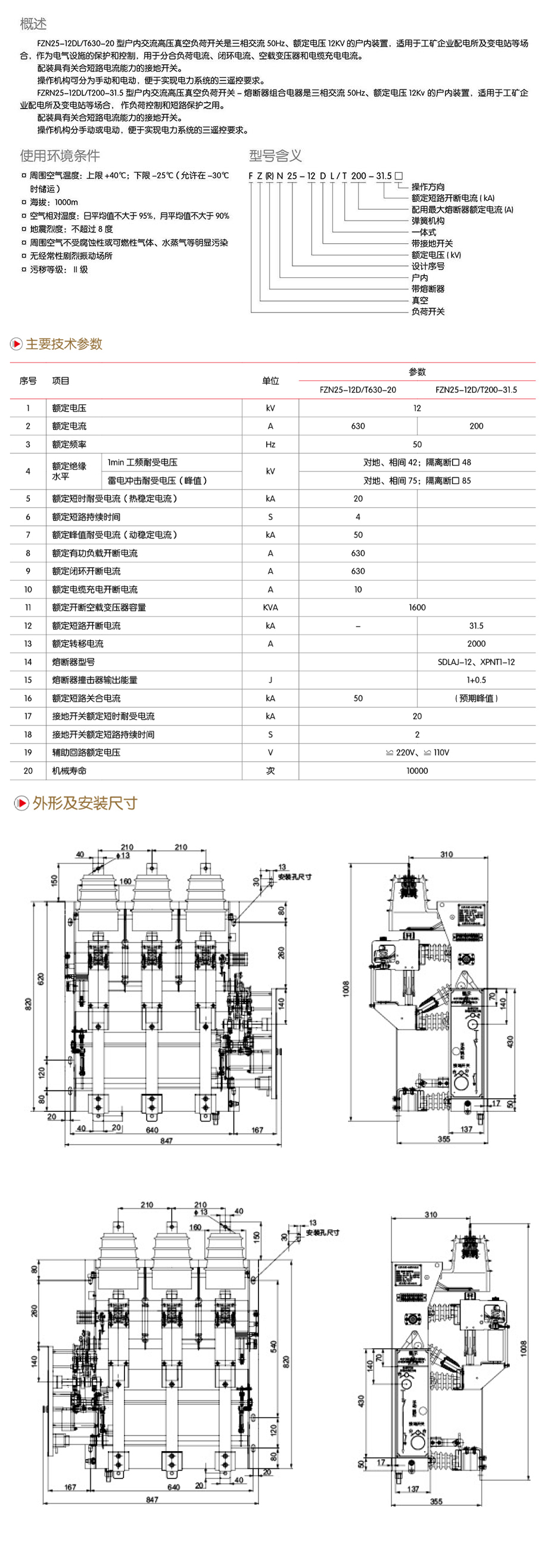 FZN25A-12D/T630-20(FZRN25A-12D/T200-31.5)户内交流高压真空负荷