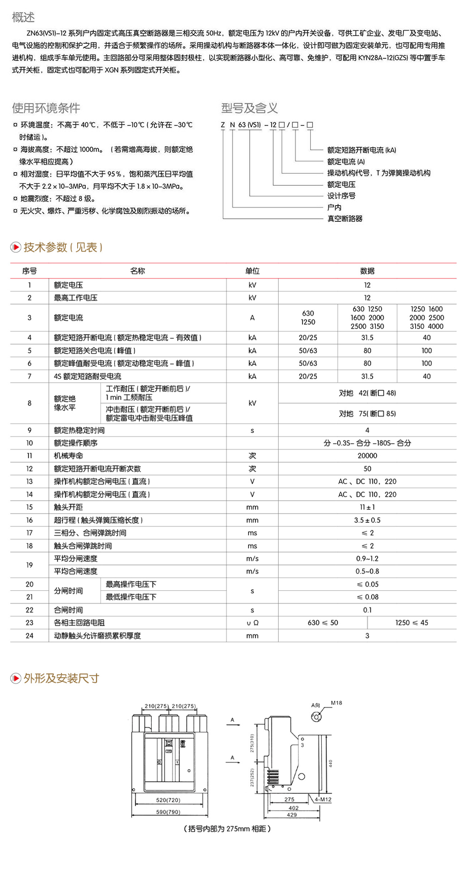 ZN63(VS1)-12户内高压固定式真空断路器