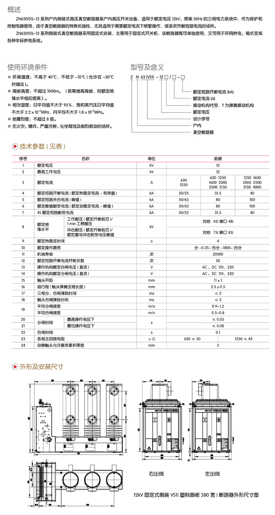 ZN63(VS1)-12户内高压侧装式真空断路器