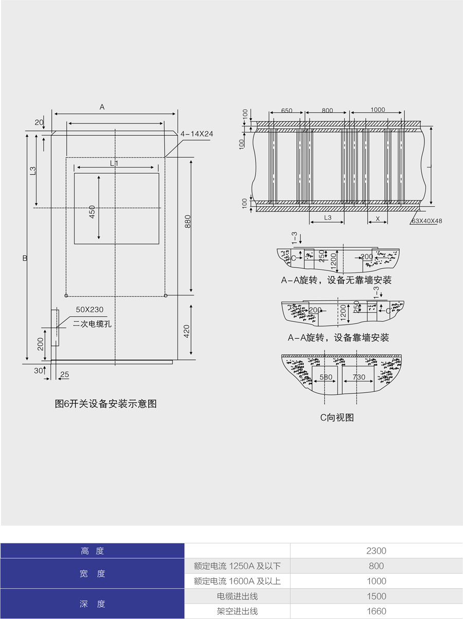 继电器仪表室可安装继电保护元件、仪表、带电监察指示器,以及要求的二次设备。控制线敷设在足够空间的线槽内,并有金属盖板,可使二次线与高压室隔离。其左侧线槽是为控制小母线的引进和引出预留的,开关柜自身内部的控制线敷设在右侧,在继电器仪表室的顶板上还留有便于施工的小母线穿越孔。接线时,仪表室顶盖板可供翻转,便于小母线的安装。