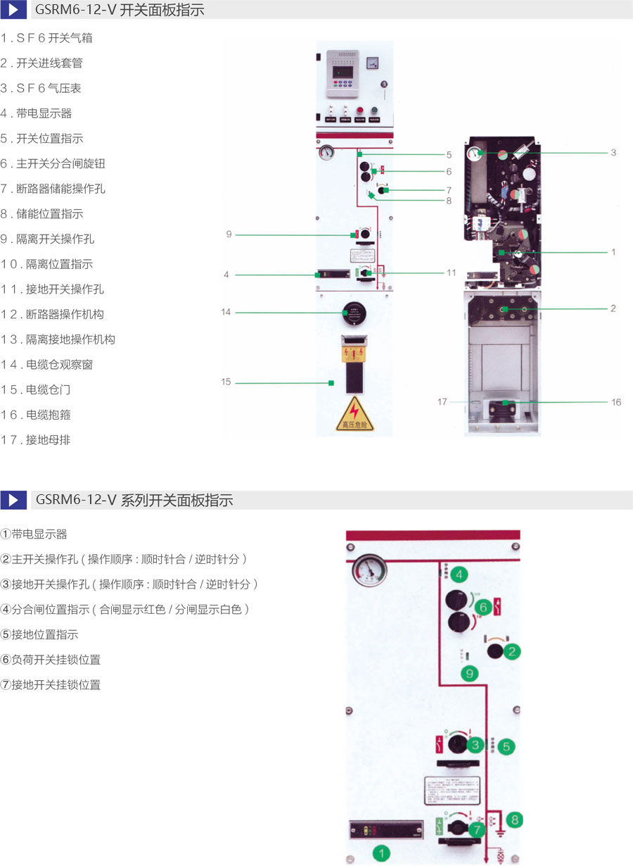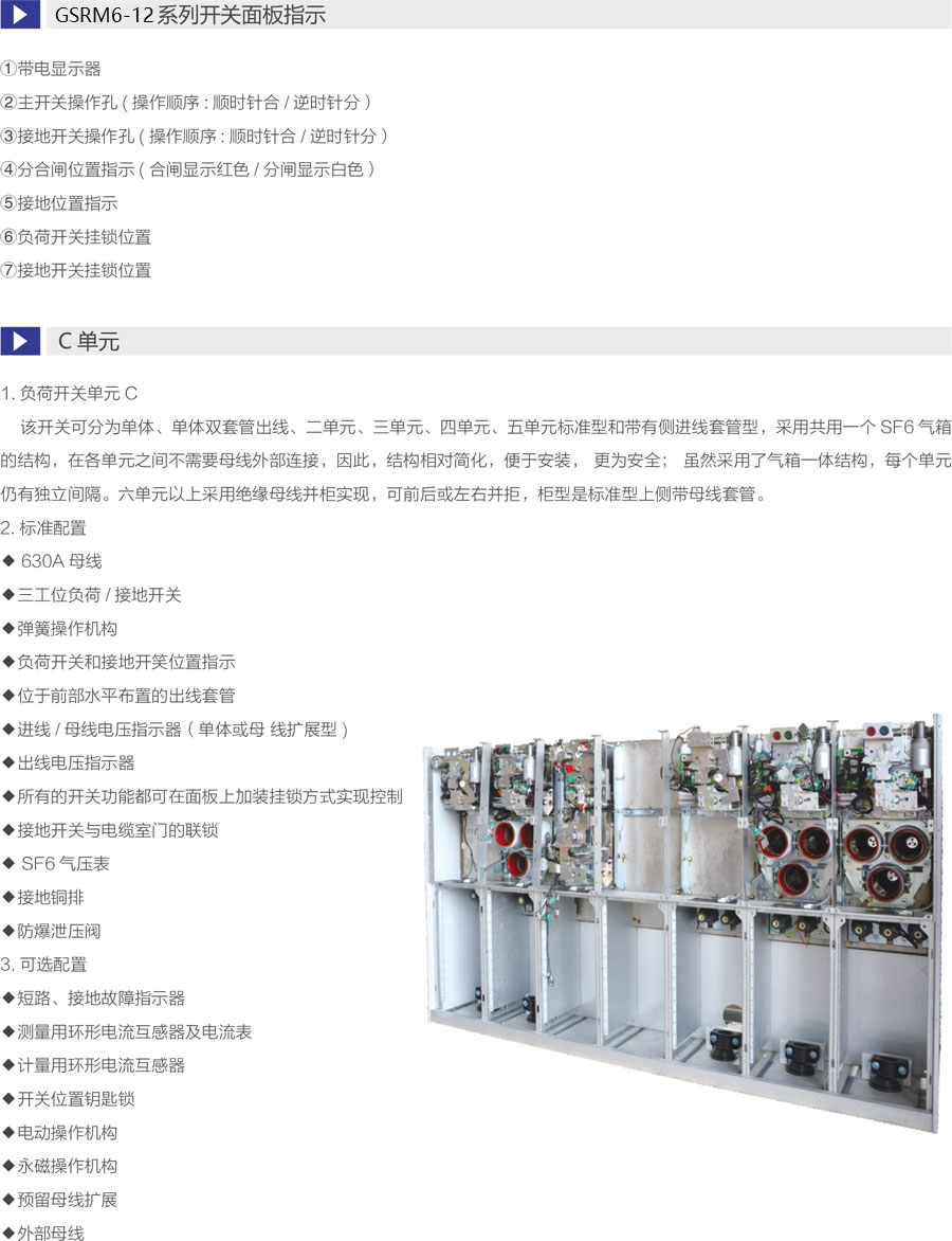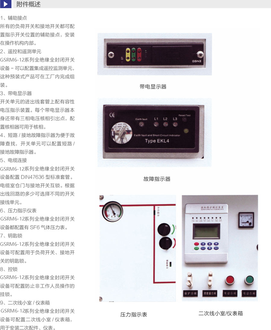 断路器采用负荷开关替代隔离开关,更安全可靠 ,一次侧全密闭设计提供意外接触的保护满足五防要求的机械联锁带电显示器可提供进出线路带电指示运行可靠:全密闭设计,所有10kV开关及母线带电体均密封在3mm不锈钢板焊接成的气箱中;配硅橡胶电缆插头,实现电缆头全绝缘全密封,从而不受灰尘、潮湿、小动物等外界环境影响弹簧储能操作机构,可人工或电动操作面板模拟线图提供开关位置指示柜体用镀锌板制作,表面静电喷涂,增强抗腐蚀性能压力表监视箱体内SF6气体安全压力范围。
