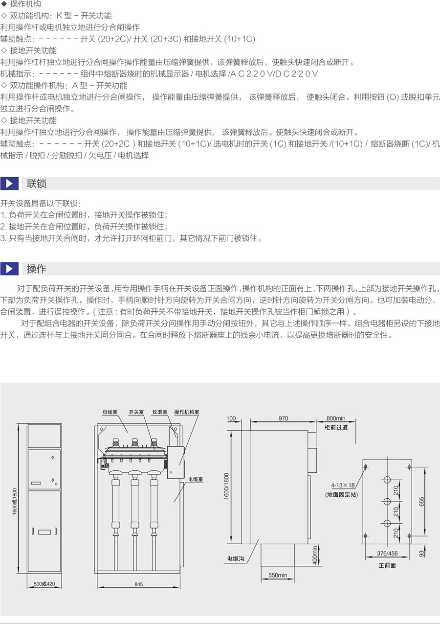 小室包含操作机构和机构联锁以及位置指示、辅助接点、脱扣线圈、带电显示器和联锁。
